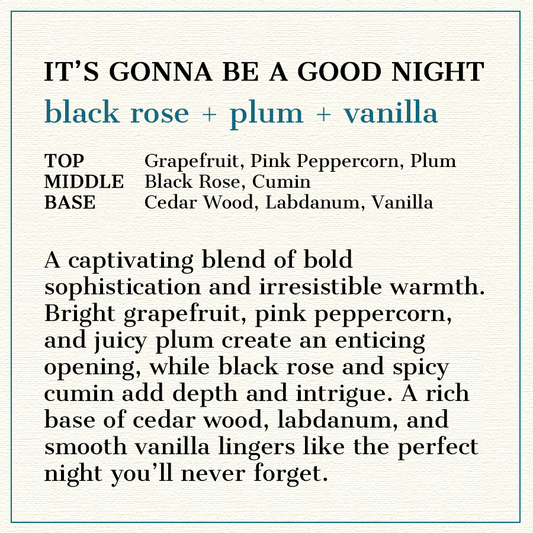 It's Gonna Be A Good Night - Black Rose + Plum + Vanilla Scented Wood Wick Candle