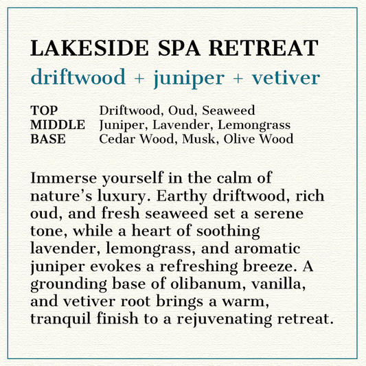 Ships Free Over $60Lakeside Spa Retreat - Driftwood + Juniper + Vetiver Scented Wood Wick Candle