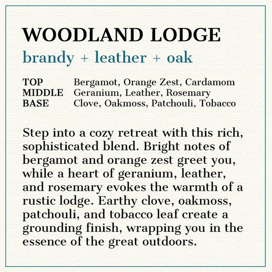 Ships Free Over $60Woodland Lodge - Brandy + Leather + Oak Scented Wood Wick Candle