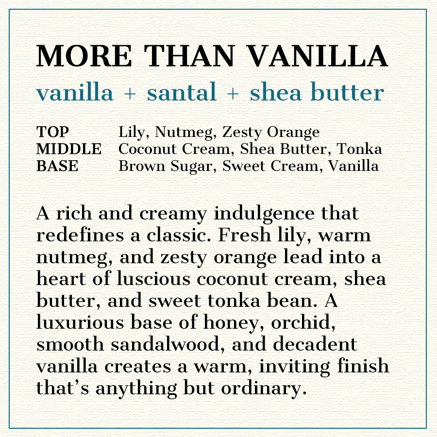 vanilla + santal + shea butter • Sweet, Woody, and Gourmand
