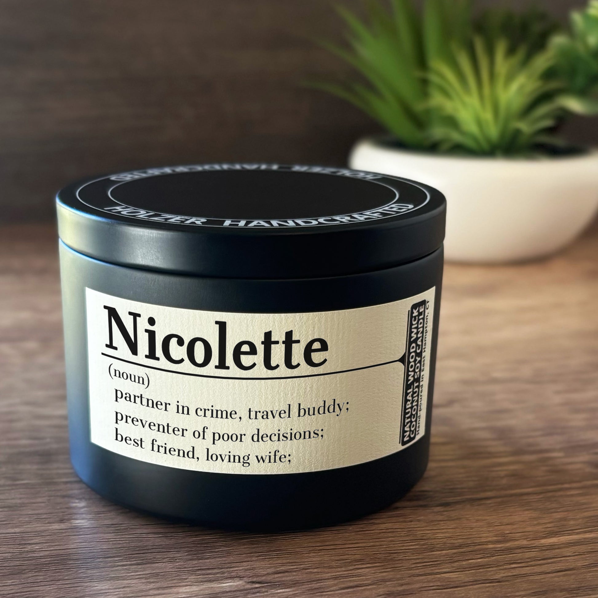 Personalized Wood Wick Candle - Custom Name, Noun, Definition Keepsake, Coconut Soy Wax, 6oz
