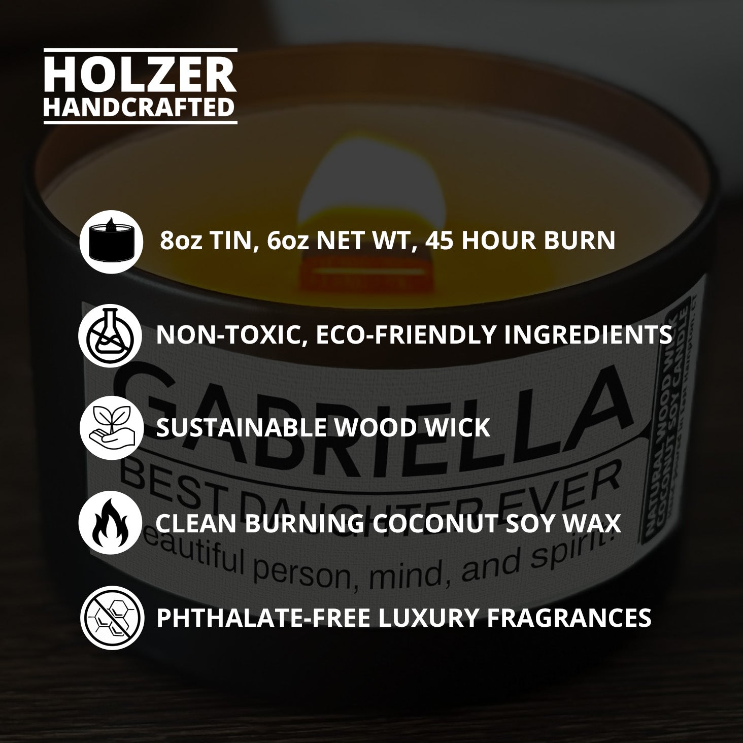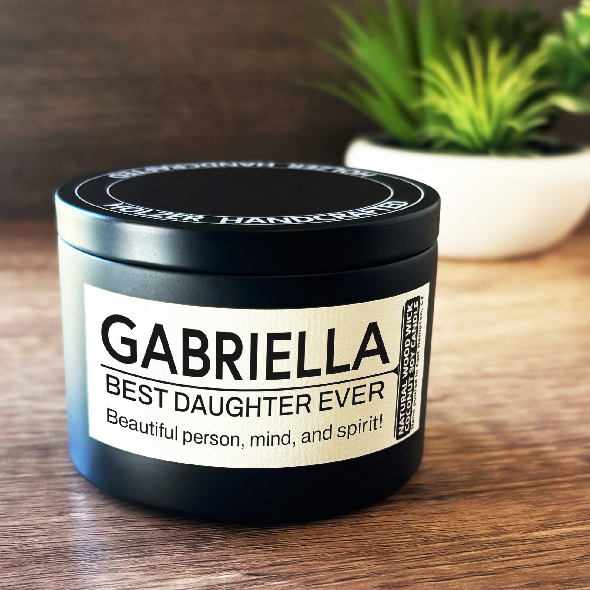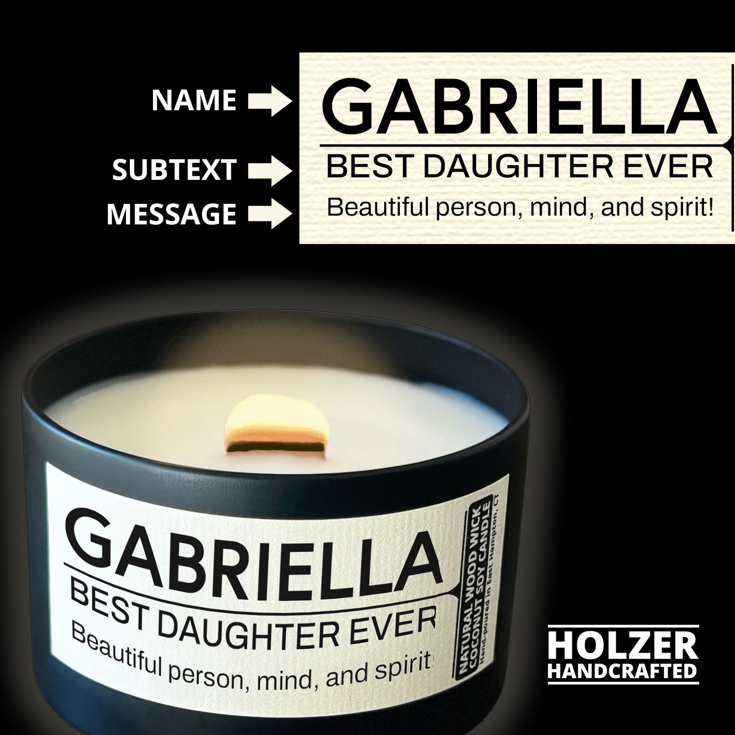 Personalized Wood Wick Candle - Custom Best Daughter Keepsake, Coconut Soy Wax, 6oz