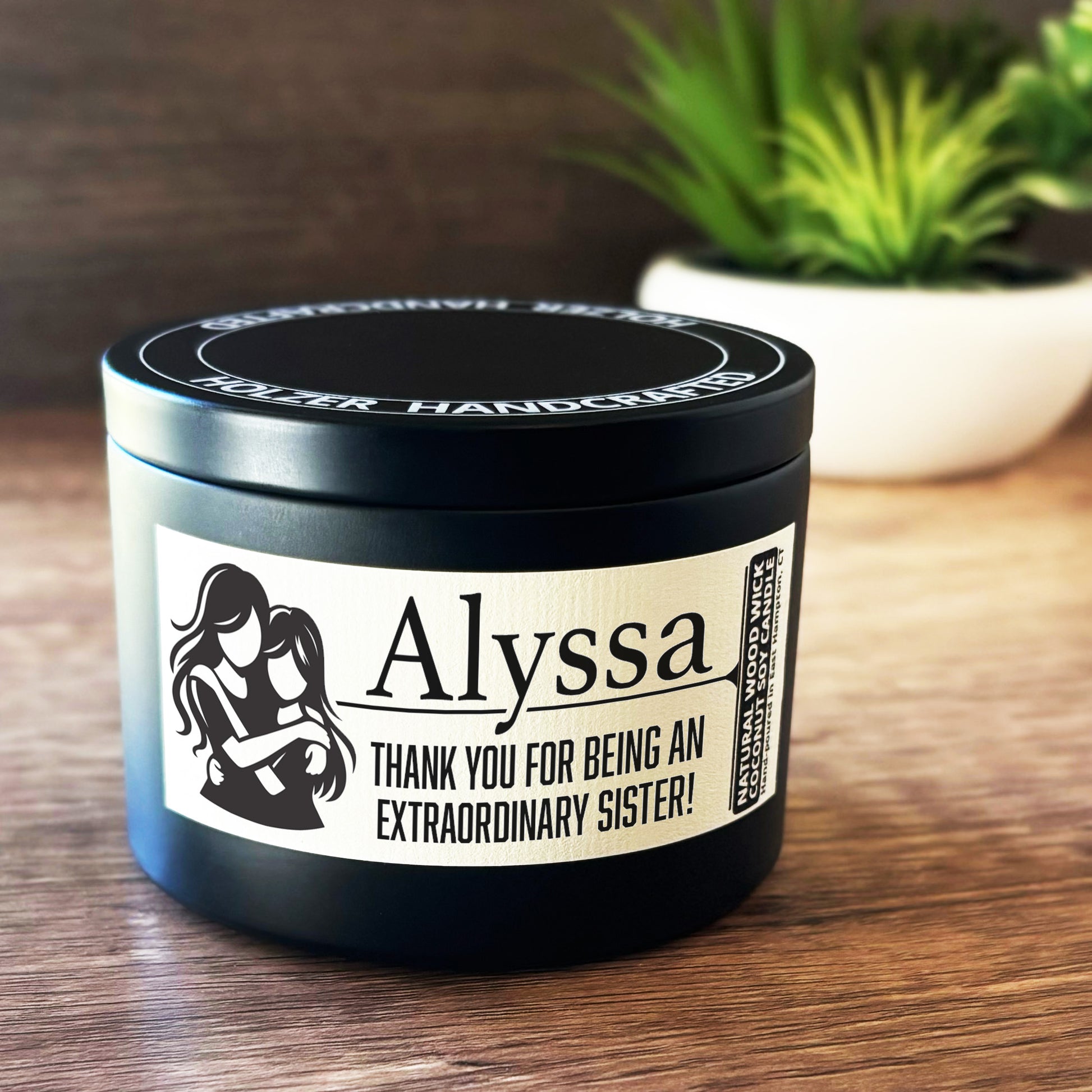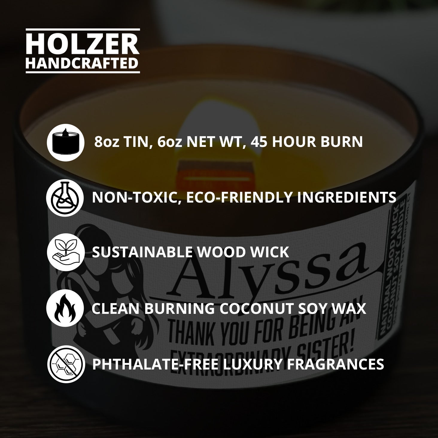 Personalized Wood Wick Candle - Custom Best Sister Keepsake, Coconut Soy Wax, 6oz