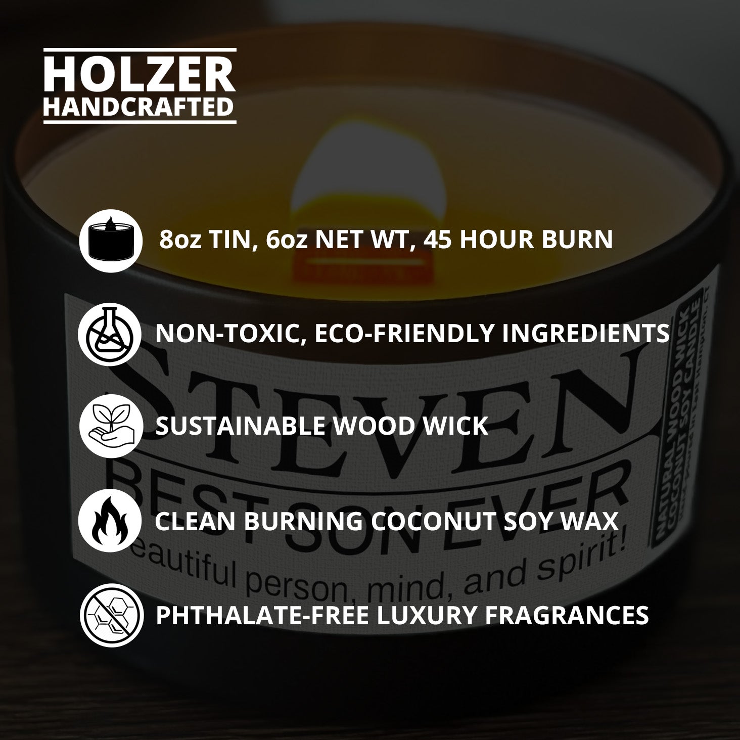Personalized Wood Wick Candle - Custom Best Son Keepsake, Coconut Soy Wax, 6oz