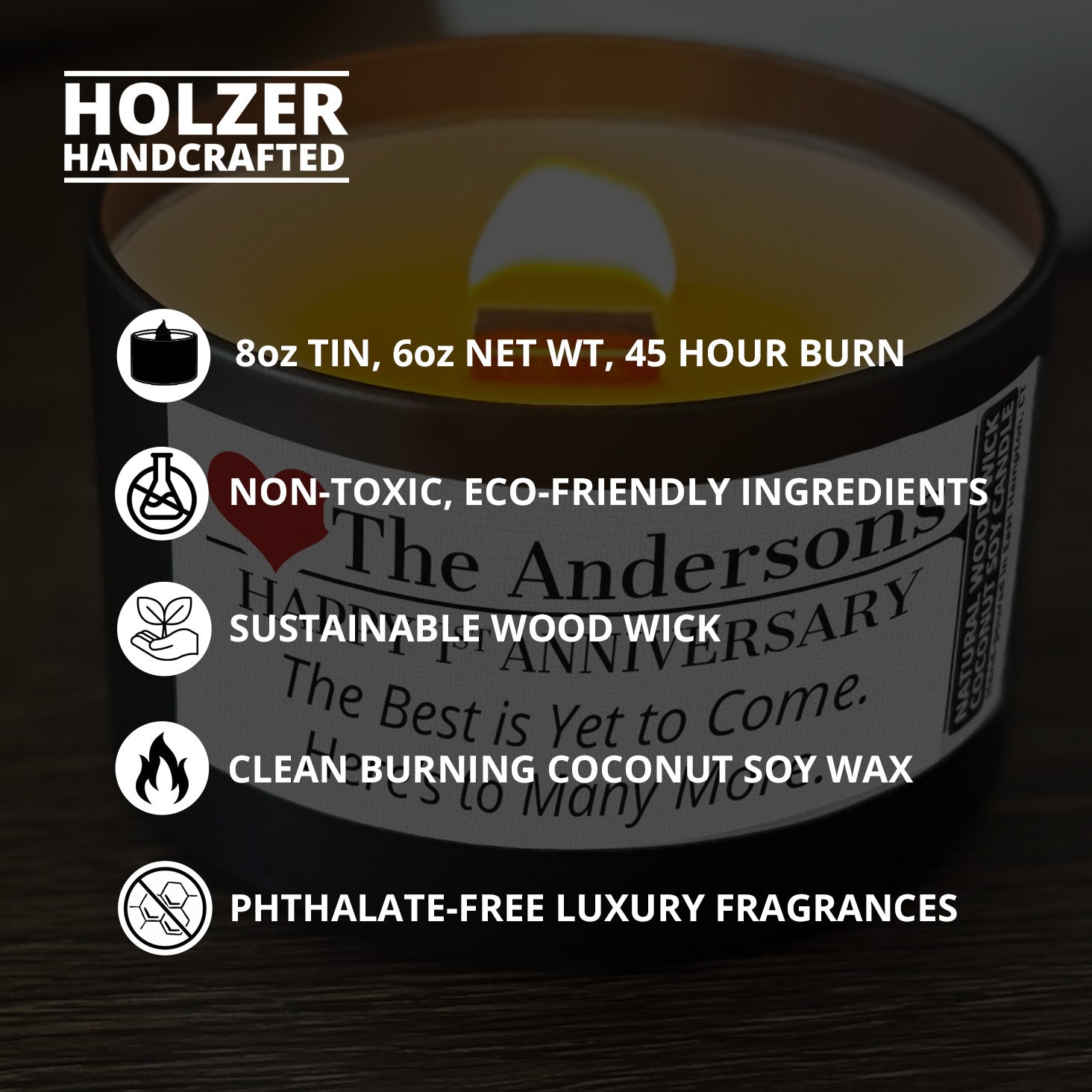 Personalized Wood Wick Candle - Custom Couples Anniversary Keepsake, Coconut Soy Wax, 6oz