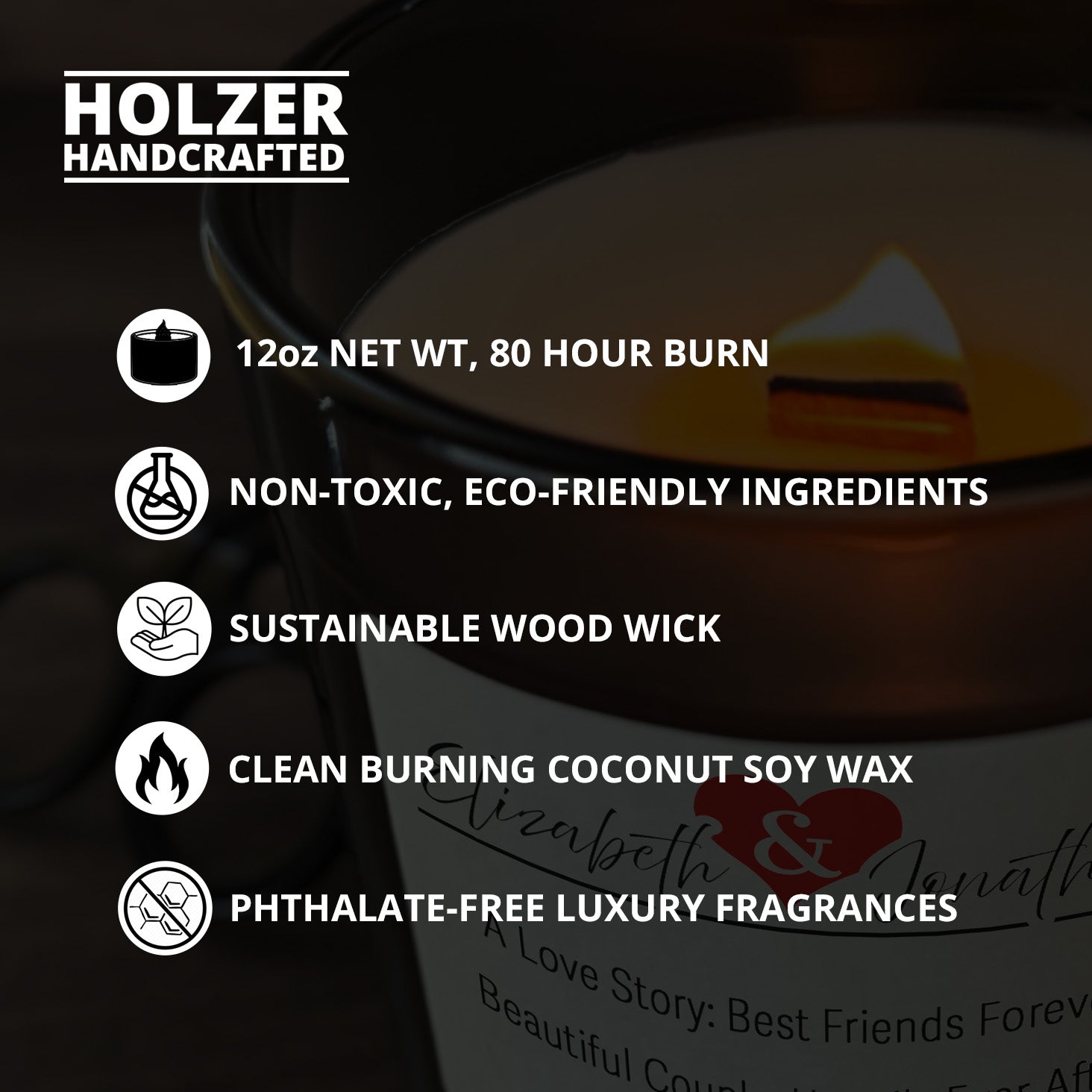 More About Personalized Wood Wick Candle - Custom Couples Keepsake - 12oz Glass Vessel with Lid