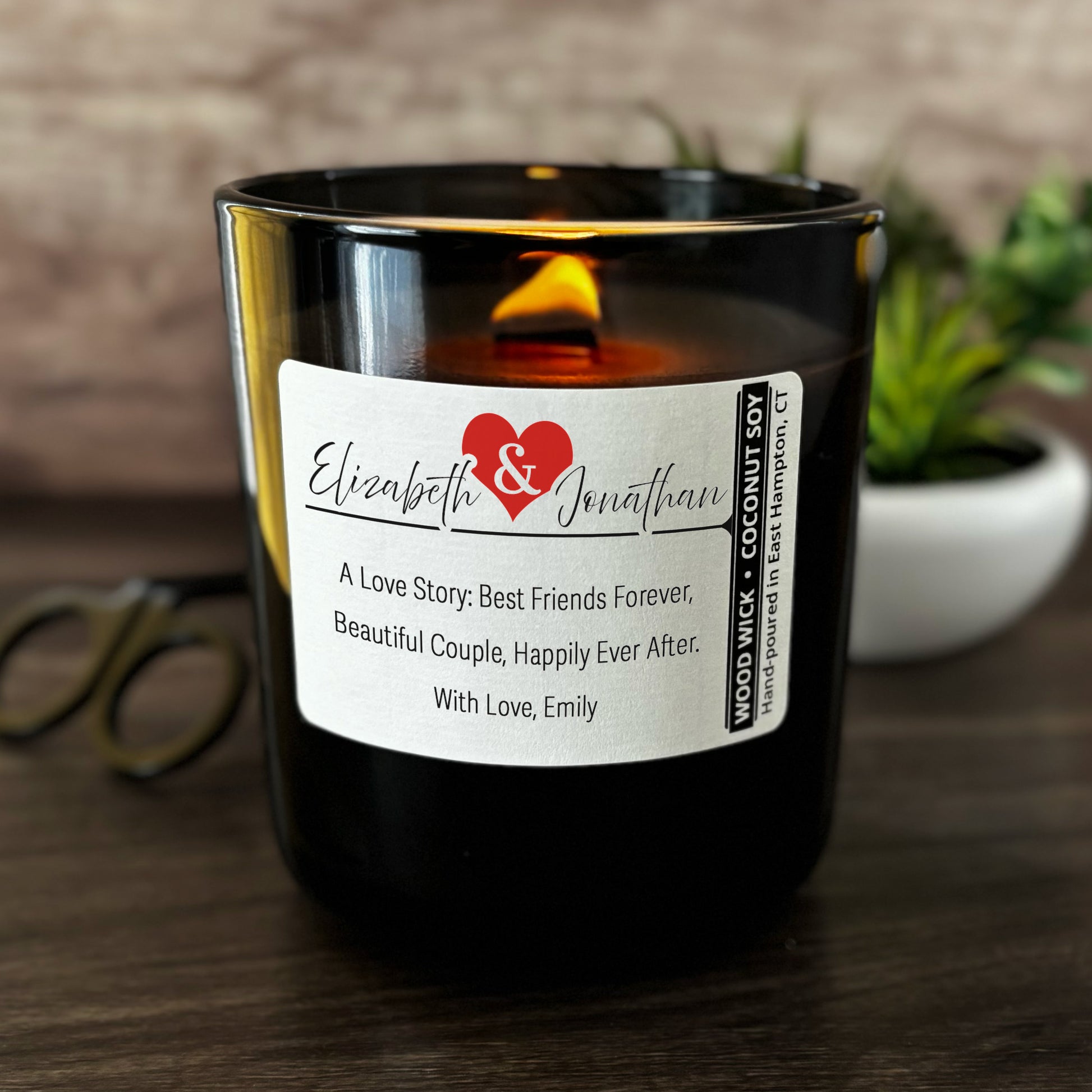 Personalized Wood Wick Candle - Custom Couples Keepsake - 12oz Glass Vessel with Lid
