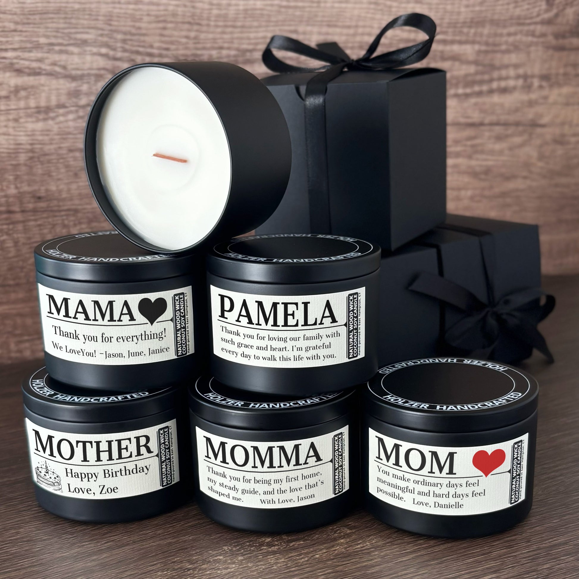 Personalized Wood Wick Candle - Custom Mom, Grandma Keepsake, Coconut Soy Wax, 6oz