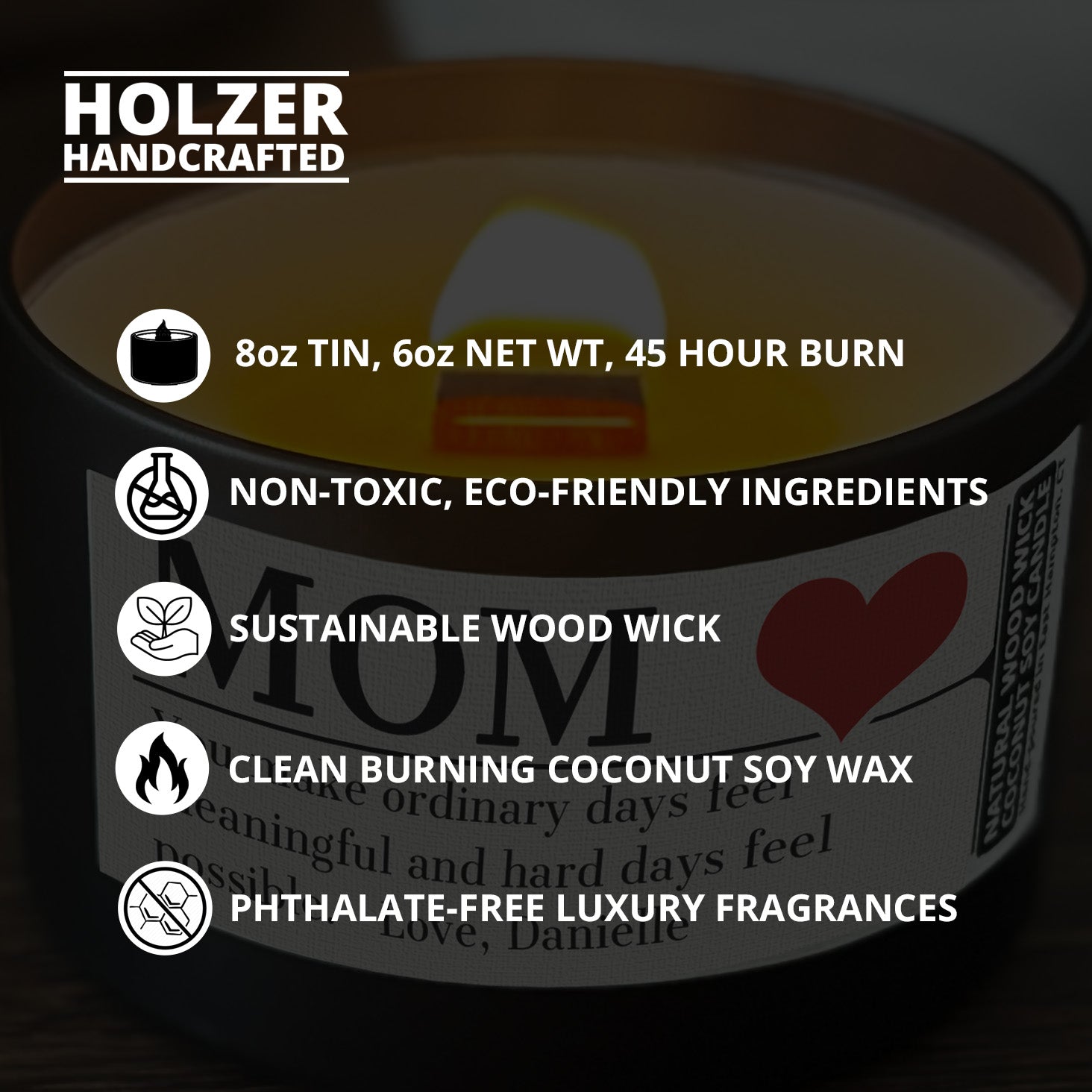 More About Personalized Wood Wick Candle - Custom Mom, Grandma Keepsake, Coconut Soy Wax, 6oz