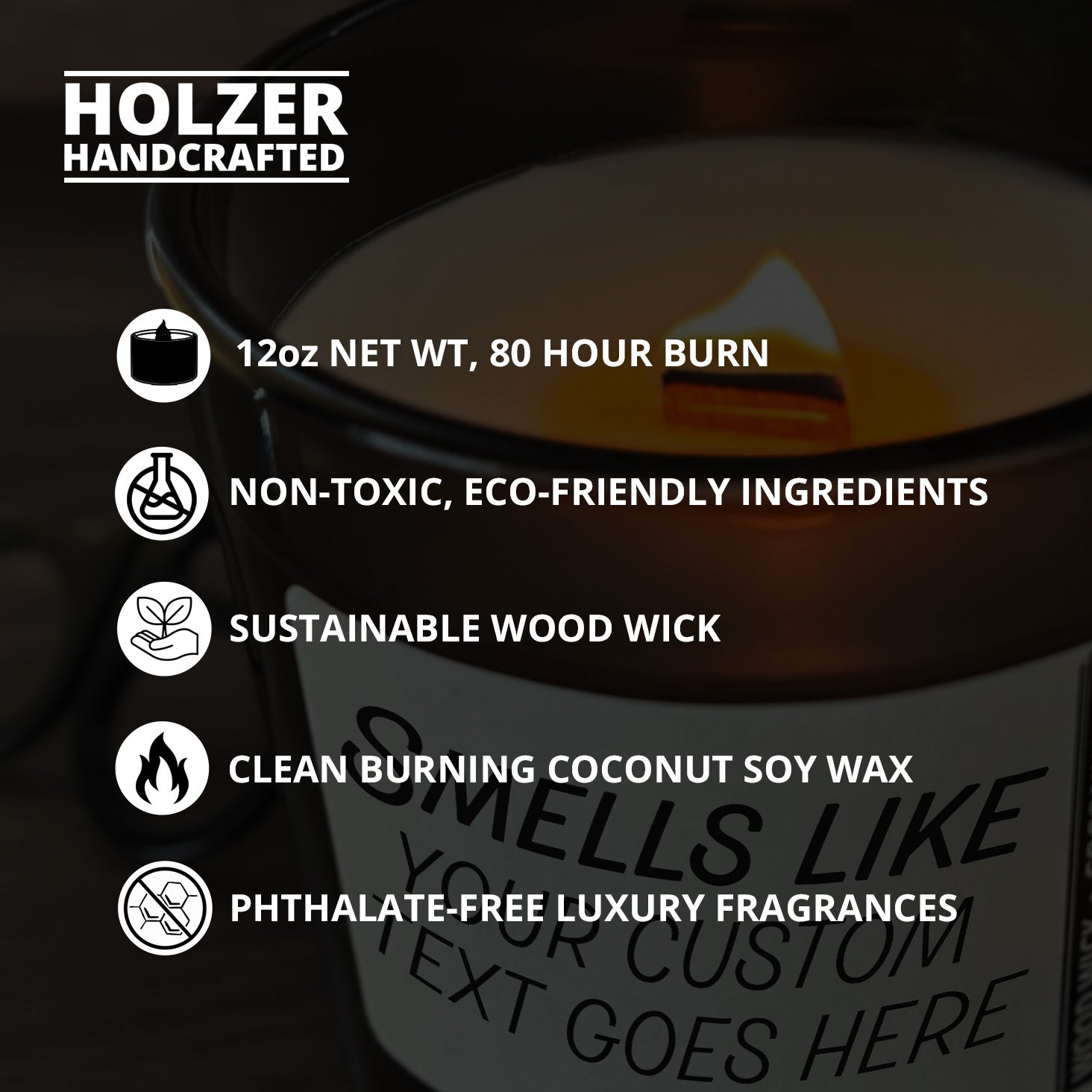 Personalized Wood Wick Candle - Custom Smells Like Keepsake - 12oz Glass Vessel with Lid