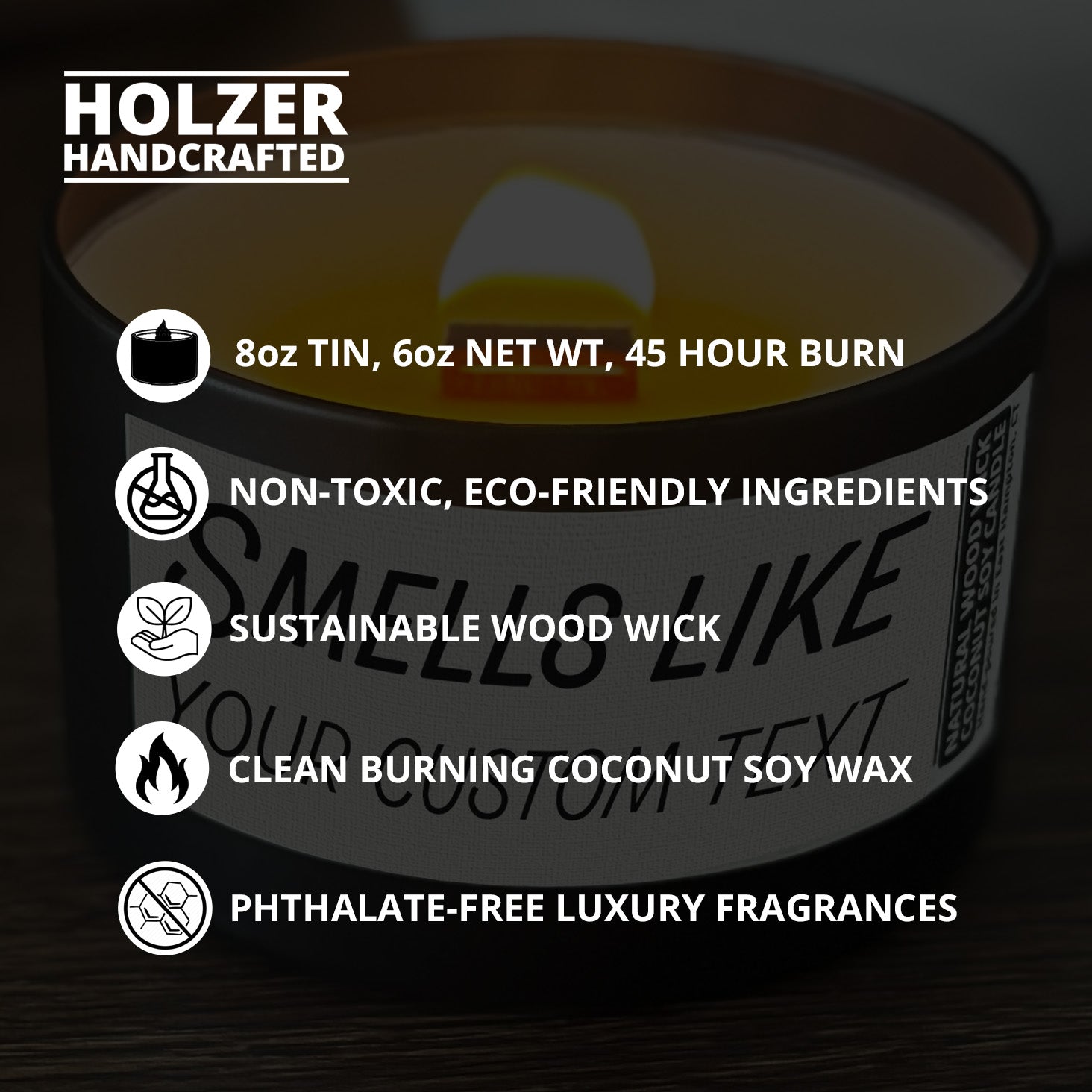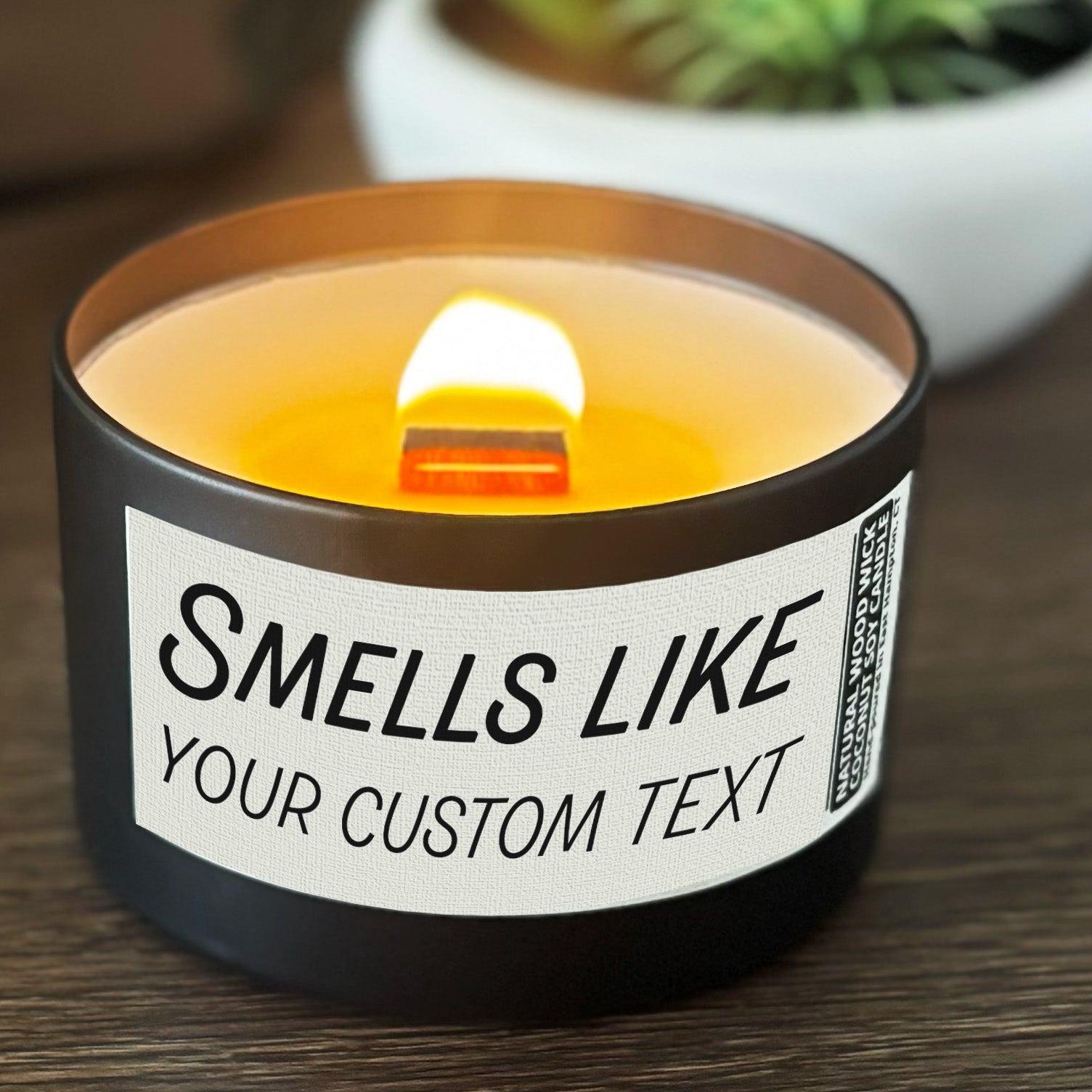 Personalized Wood Wick Candle - Custom Smells Like Keepsake, Coconut Soy Wax, 6oz