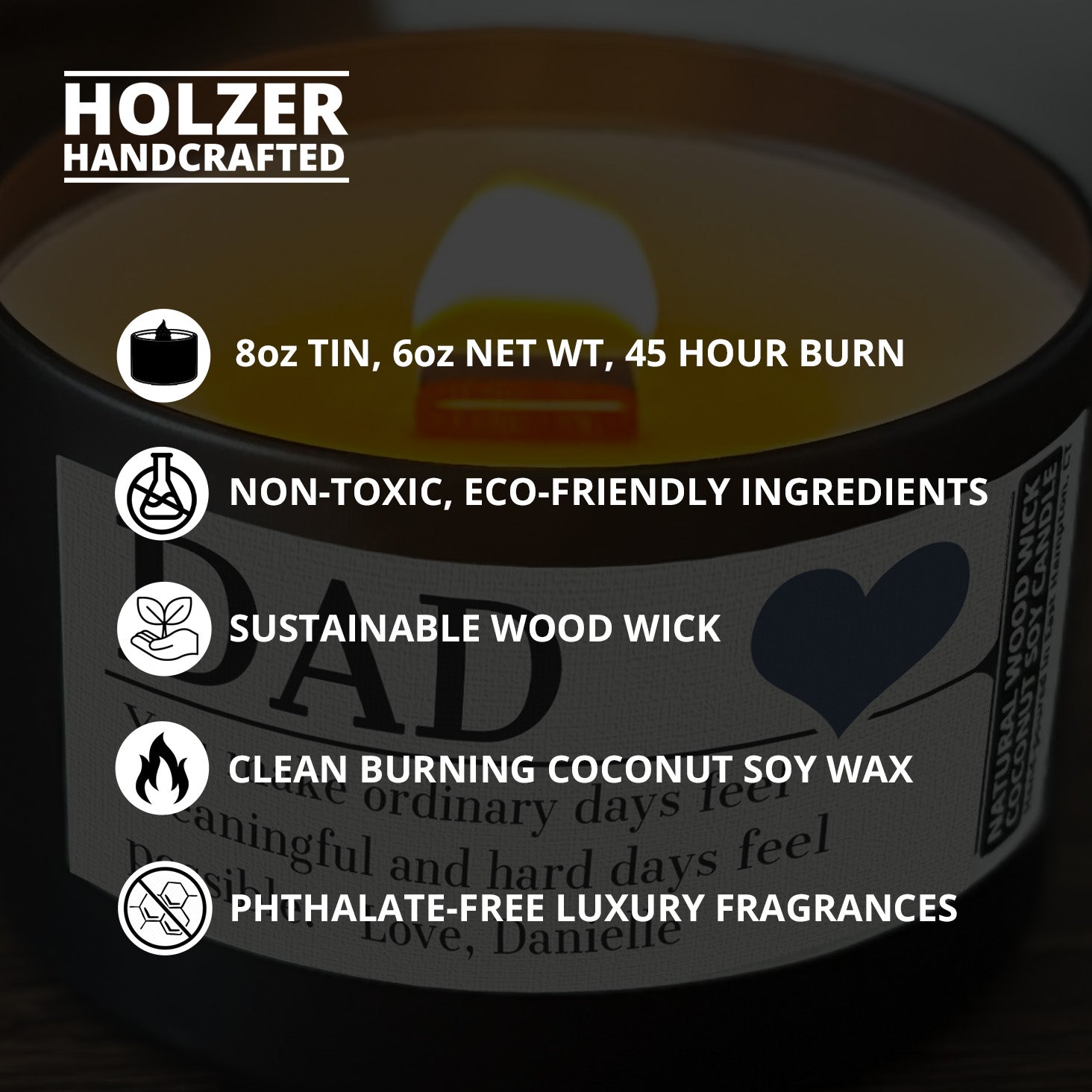 Personalized Wood Wick Candle - Custom Dad, Grandpa, Special Guy Keepsake, Coconut Soy Wax, 6oz