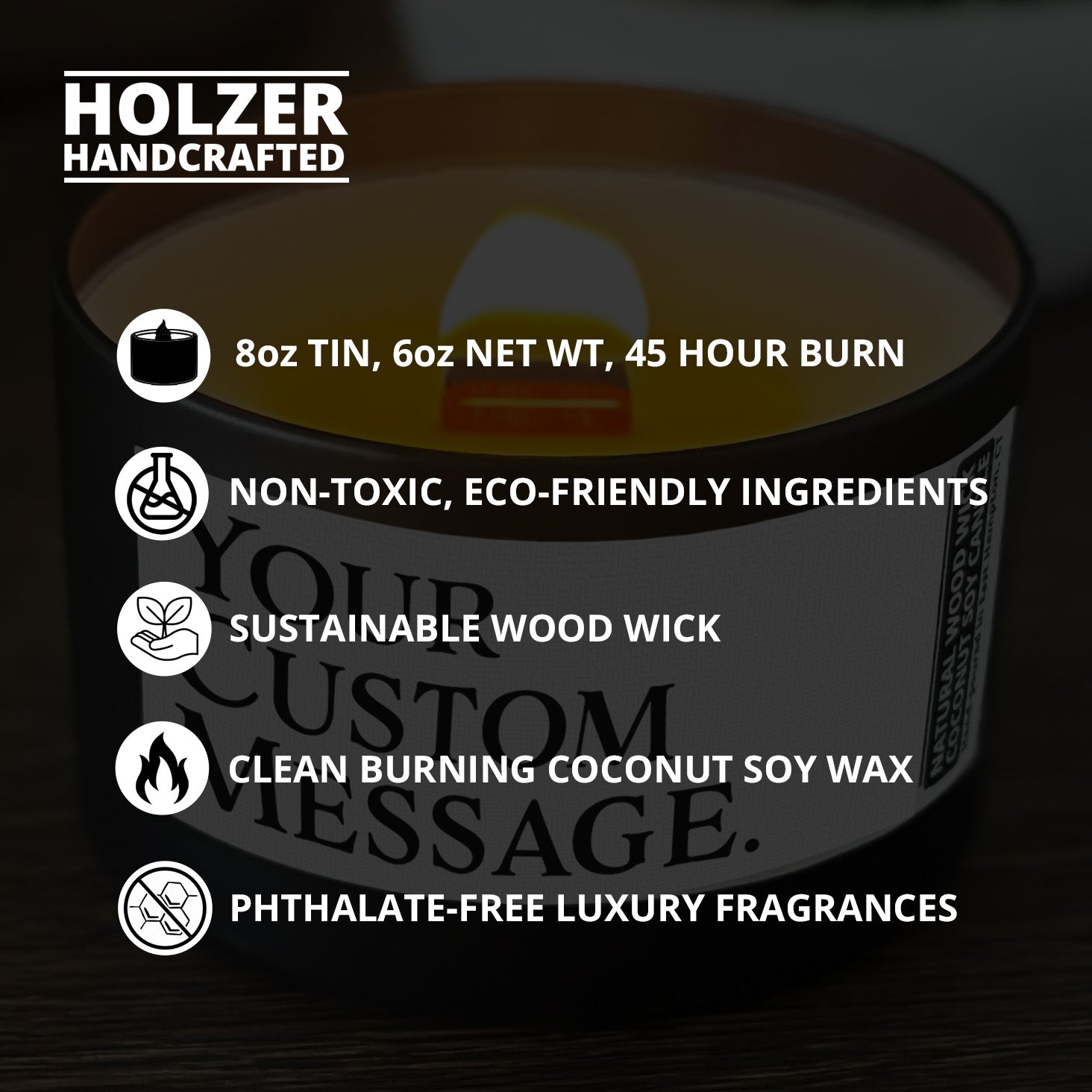 Personalized Wood Wick Candle - Your Custom Text Keepsake, Coconut Soy Wax, 6oz